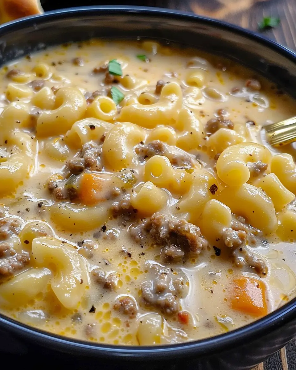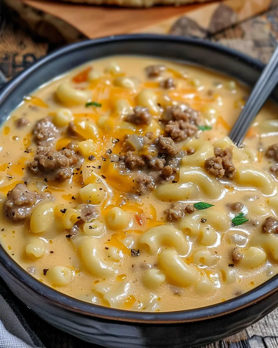 PrintCheeseburger Macaroni Soup: A Cozy, Indulgent Twist at Home