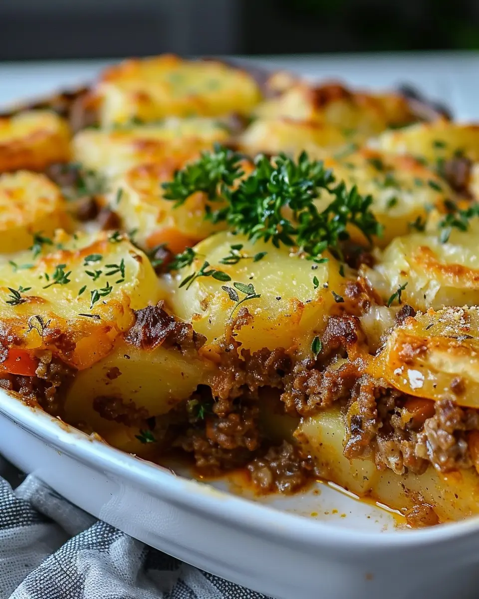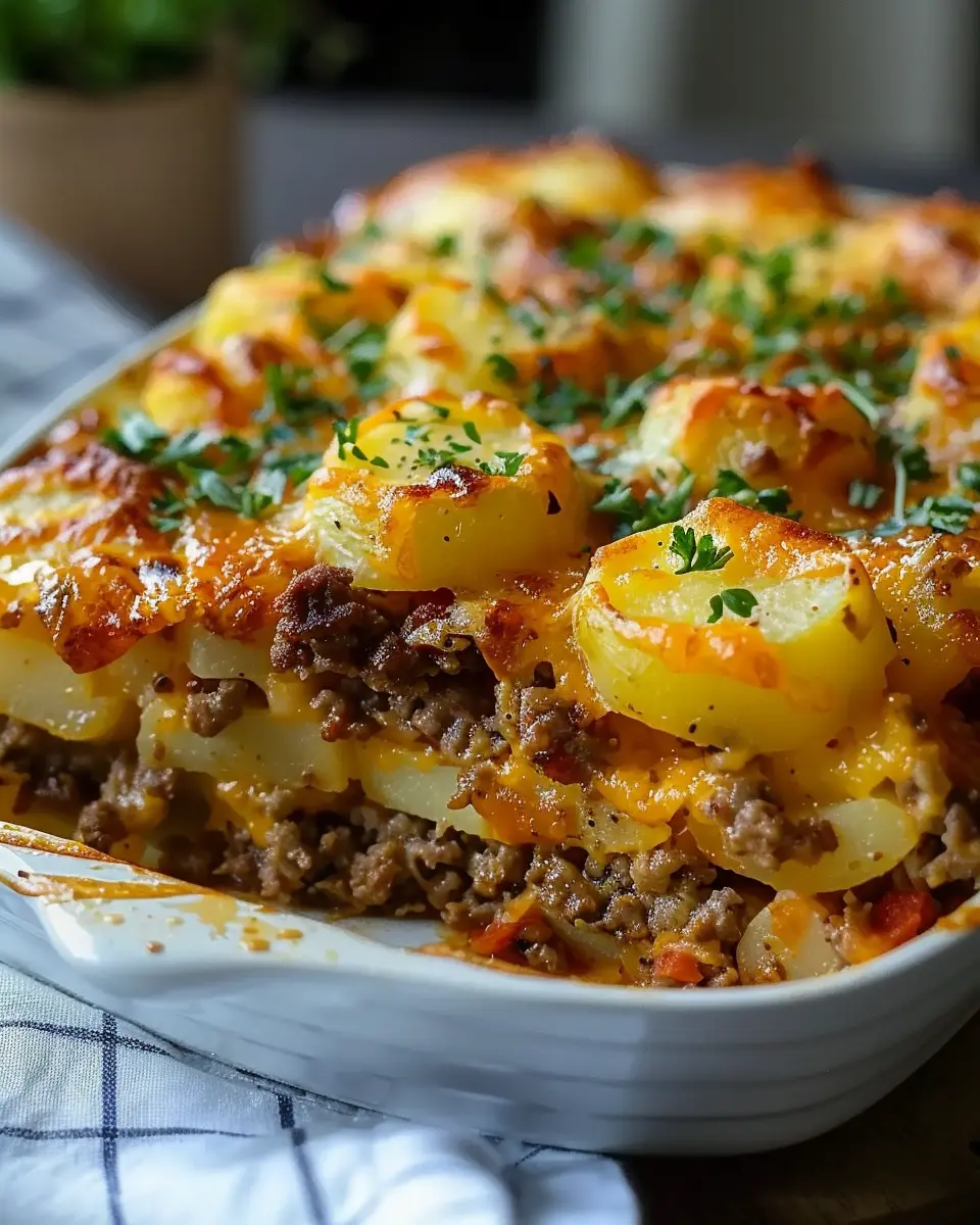 A delicious and easy-to-make hamburger potato casserole that brings comfort to your dinner table.
